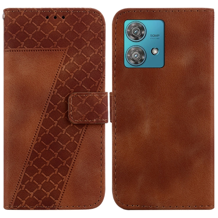 Funda de Cuero para Motorola Edge 40 Neo con Relieve en Forma de 7 (Marrón)