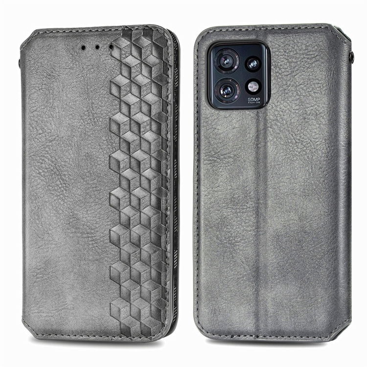 Funda de Cuero Magnético Prensado Cubic Grid para Motorola Edge 40 Pro (Gris)