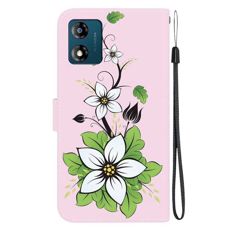 Funda de Cuero para Motorola Moto E13 con Dibujo Coloreado y Textura de Cristal (Lirio)