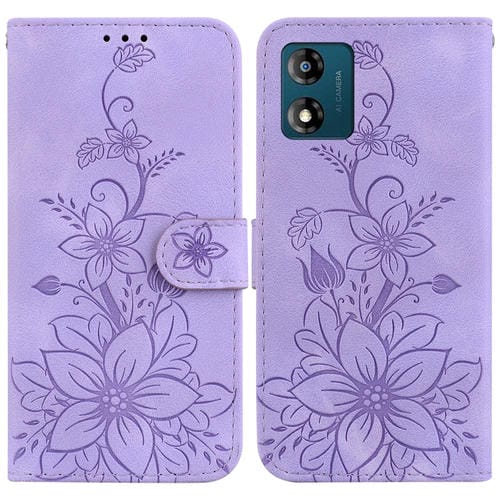 - 1x Funda de Teléfono Motorola Moto E13 Lily Cuero en Relieve (Púrpura)