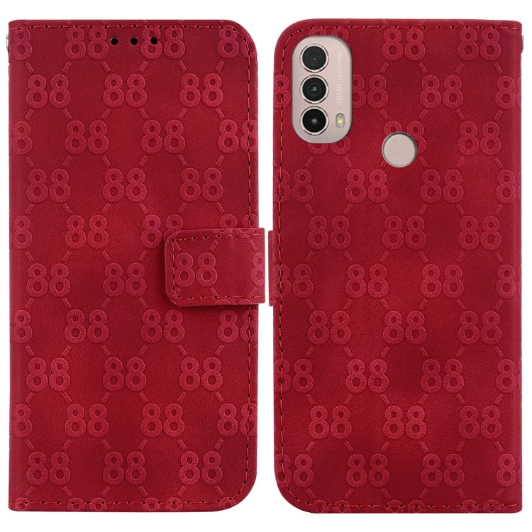 Estuche para Motorola Moto E20 E30 E40 de Cuero en Relieve Doble Forma 8 (Rojo)