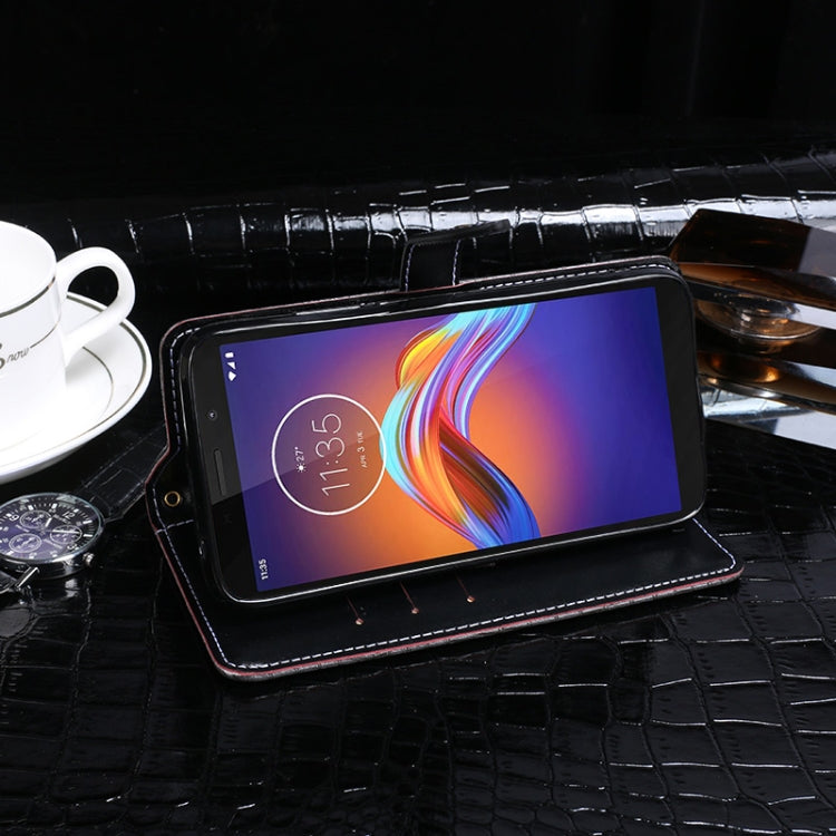 Para Motorola Moto E6 Play idewei Funda de cuero con tapa horizontal con textura de cocodrilo con soporte, ranuras para tarjetas y billetera (negro)