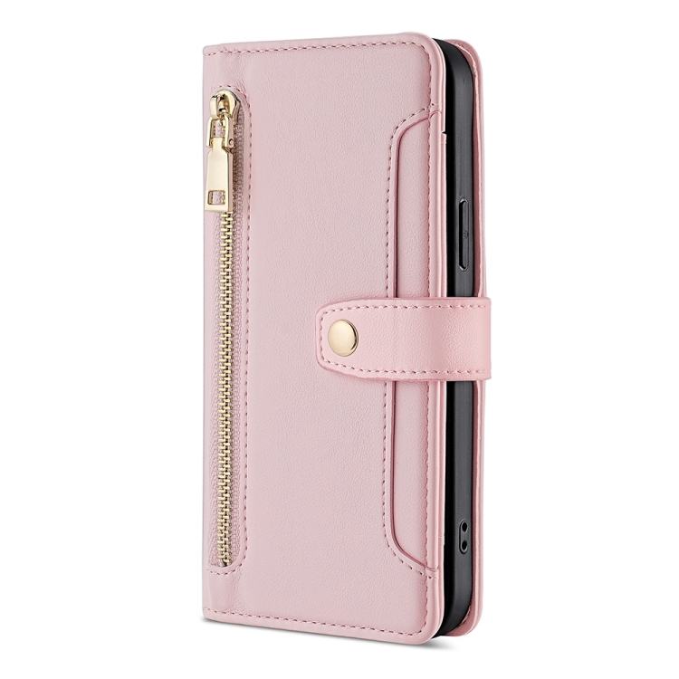 Funda de Cuero para Motorola Moto G14 4G Lite con Billetera y Cremallera (Rosa)