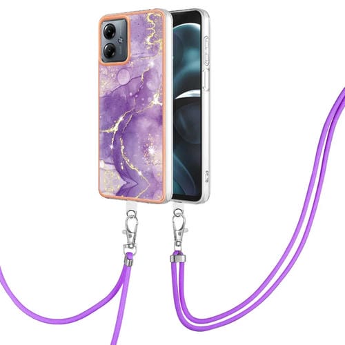 Estuche para Motorola Moto G14 IMD Doble Cara Mármol Galvanizado con Cordón (Púrpura)