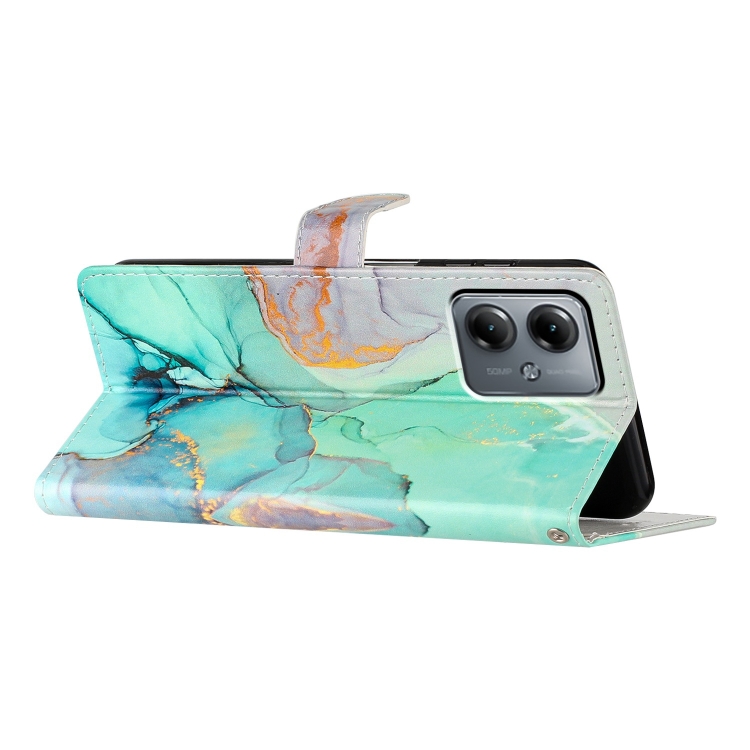 Funda de Cuero para Motorola Moto G14 con Dibujo Coloreado Mármol Verde