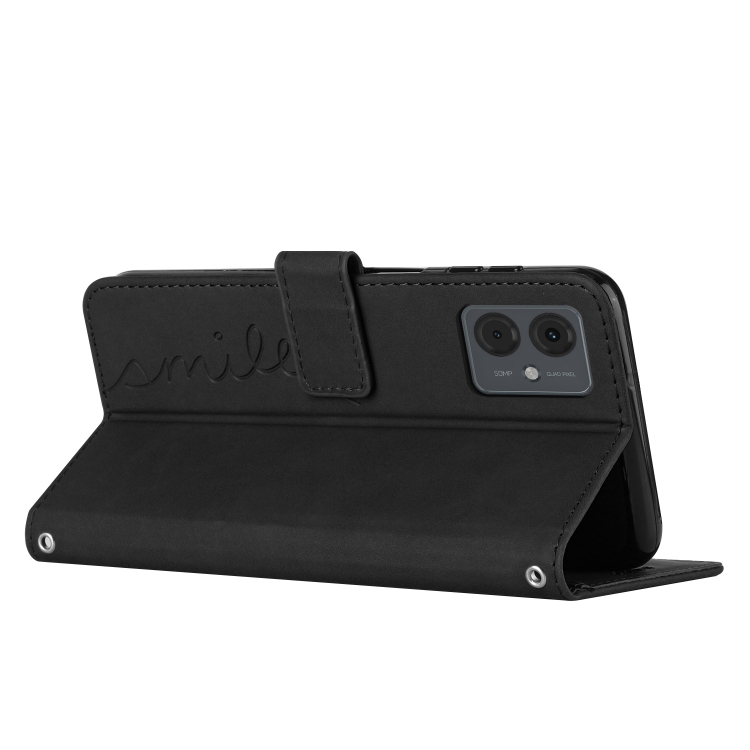 Funda de Cuero para Motorola Moto G14 Skin Feel Heart Pattern (Negro)