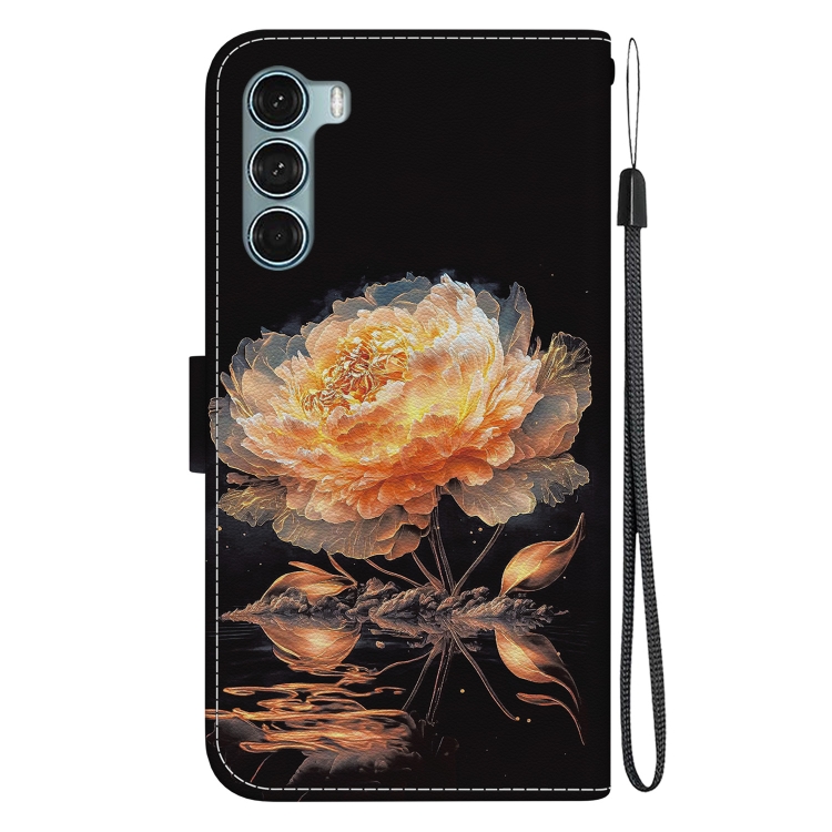 Funda de Cuero para Motorola Moto G200 5G con Dibujo Coloreado y Textura de Cristal (Peonía Dorada)