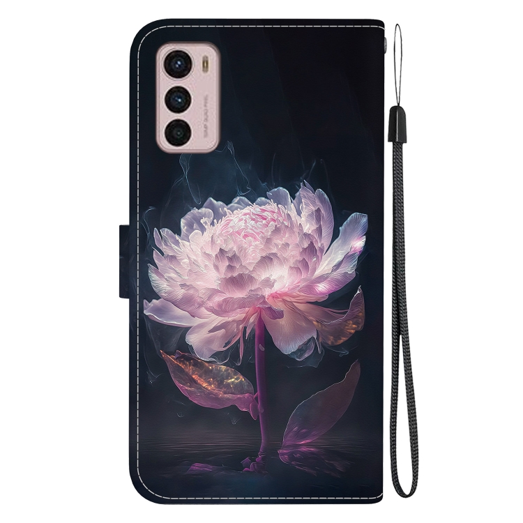 Funda de Cuero para Motorola Moto G42 con Dibujo Coloreado y Textura de Cristal (Peonía Púrpura)