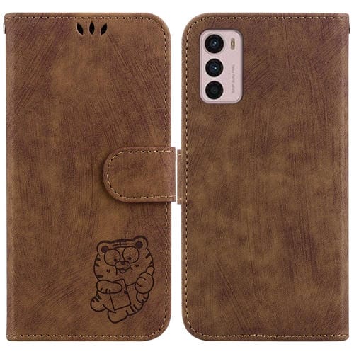 Funda para Motorola Moto G42 de Cuero con Relieve Little Tiger (Marrón)