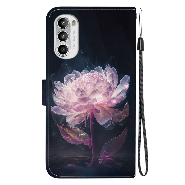 Funda de Cuero para Motorola Moto G52 con Dibujo Coloreado y Textura de Cristal (Peonía Púrpura)