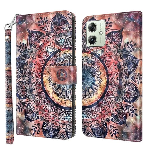 - 1x Funda de Cuero para Motorola Moto G54 Pintada en 3D Mandala Colorida