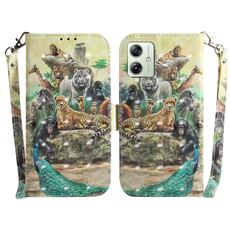 Funda para Motorola Moto G54 de Cuero con Tapa Horizontal y Diseño 3D (Zoo)