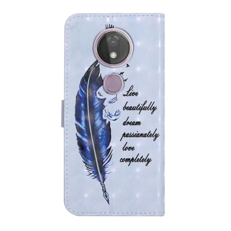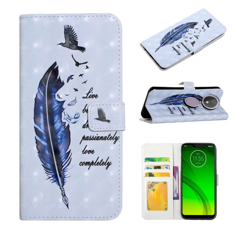 Funda de Cuero para Motorola Moto G7 Power con Dibujo 3D en Relieve (Pluma Azul)