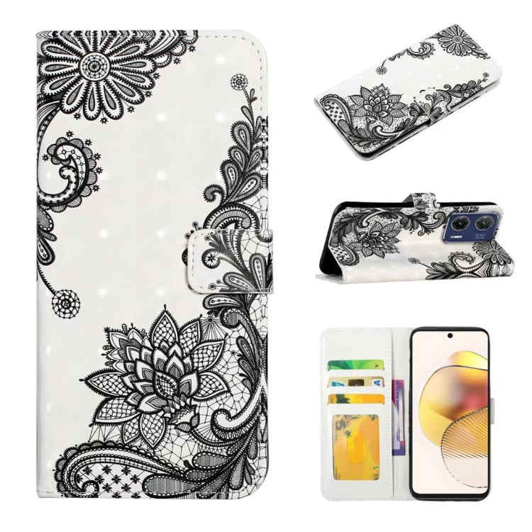 Funda para Motorola Moto G73 de Cuero con Dibujo 3D en Relieve al Óleo (Flor de Encaje)