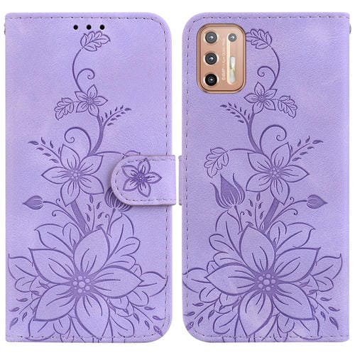 - 1x Funda de Cuero con Relieve Lily para Motorola Moto G9 Plus (Púrpura)