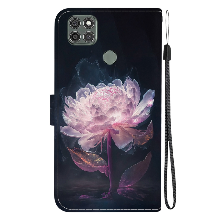Funda de Cuero para Motorola Moto G9 Power con Dibujo Coloreado Crystal Texture (Peonía Morada)