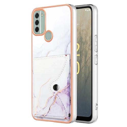 Estuche para Teléfono Nokia C31 con Ranura para Tarjeta IMD Patrón de Mármol (Blanco y Morado)