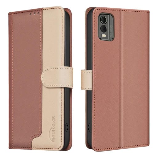 Funda de Cuero Antirrobo RFID para Nokia C32 a Juego de Colores (Marrón)