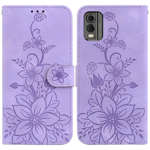 Funda de Teléfono para Nokia C32 Lily Cuero en Relieve (Púrpura)