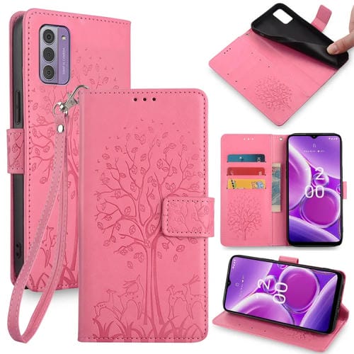 Funda para Teléfono Nokia G42 5G Cuero con Relieve de Árbol y Ciervo (Rosa)