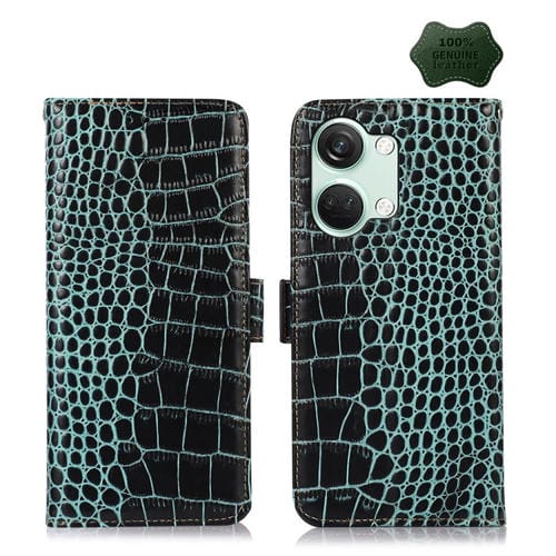 Estuche para OnePlus Nord 3 y Ace 2V de Cuero de Vaca con Capa Superior de Cocodrilo (Verde)