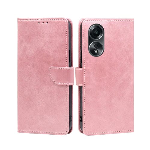 Para Oppo A58 4G Funda para Teléfono de Cuero con Tapa con Hebilla y Textura de Becerro (Oro Rosa)