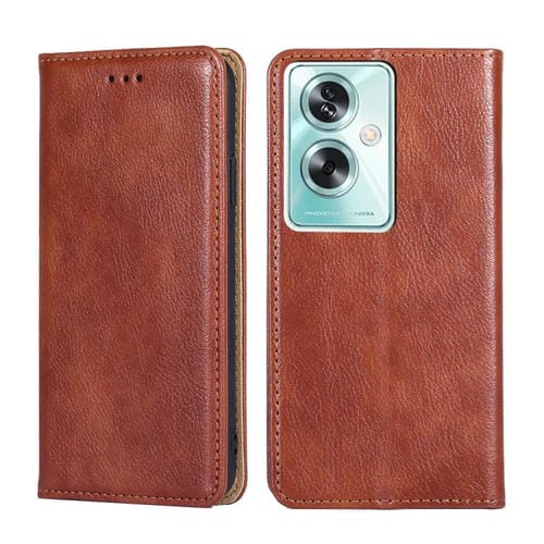 Para Oppo A79 5G Funda de Teléfono de Cuero Magnético de Color Sólido con Brillo Global (Marrón)