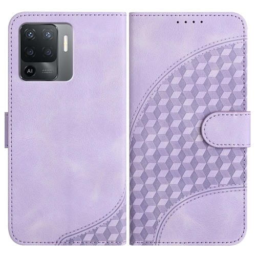 Para Oppo A94 4G/F19 Pro 4G/Reno5 F 4G/Reno5 Lite Yx0060 Funda de Cuero para Teléfono con Relieve de Cabeza de Elefante y Cordón (Púrpura Claro)