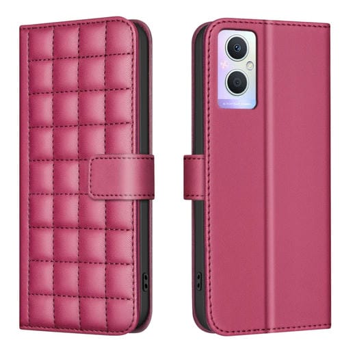 Para Oppo A96 5G / Reno7 Z Funda de Cuero para Teléfono con Textura Cuadrada (Rojo)