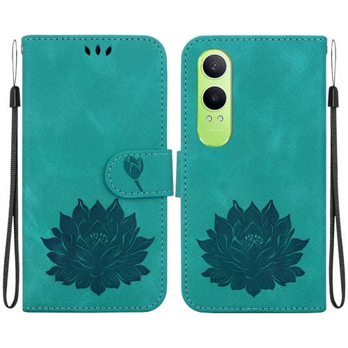 Para Oppo K12X Funda de Cuero con Relieve de Loto (Verde)