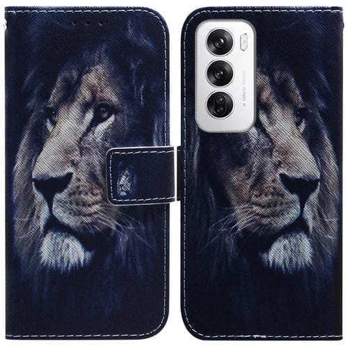 Para Oppo Reno12 5G Funda de Teléfono de Cuero con Tapa con Dibujo Coloreado Global (León)