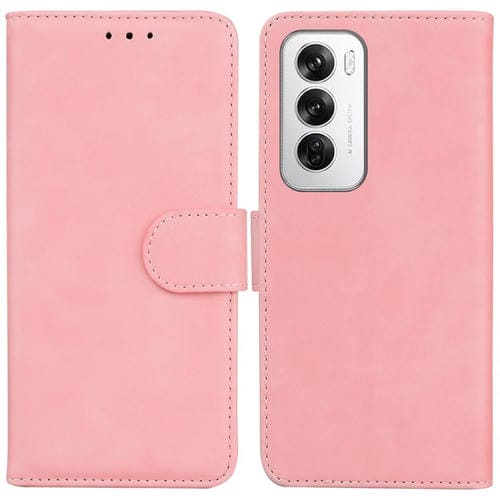 Para Oppo Reno12 5G Global Skin Feel Pure Color Funda de Cuero con Tapa para Teléfono (Rosa)