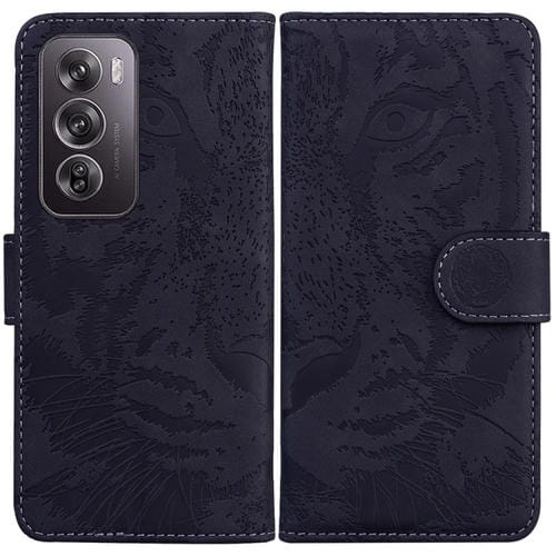 Para Oppo Reno12 Pro 5G Global Tiger Patrón En Relieve Funda de Cuero con Tapa para Teléfono (Negro)