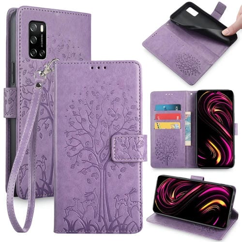 Funda de Cuero para Rakuten Big S Tree & Deer en Relieve (Púrpura)