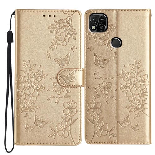Para Redmi 10A Funda de Cuero para Teléfono con Mariposas y Flores (Dorado)