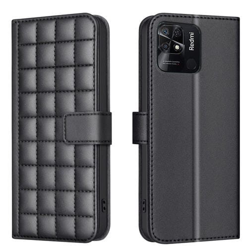 Para Redmi 10C Funda de Cuero con Textura Cuadrada (Negro)
