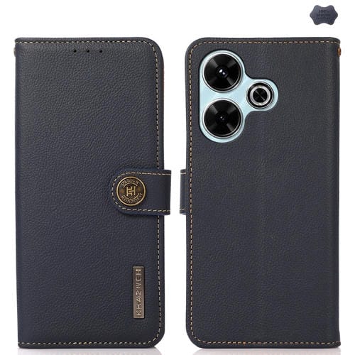 Para Redmi 13 4G Khazneh Custer Texture Rfid Funda para Teléfono de Cuero Genuino (Azul)