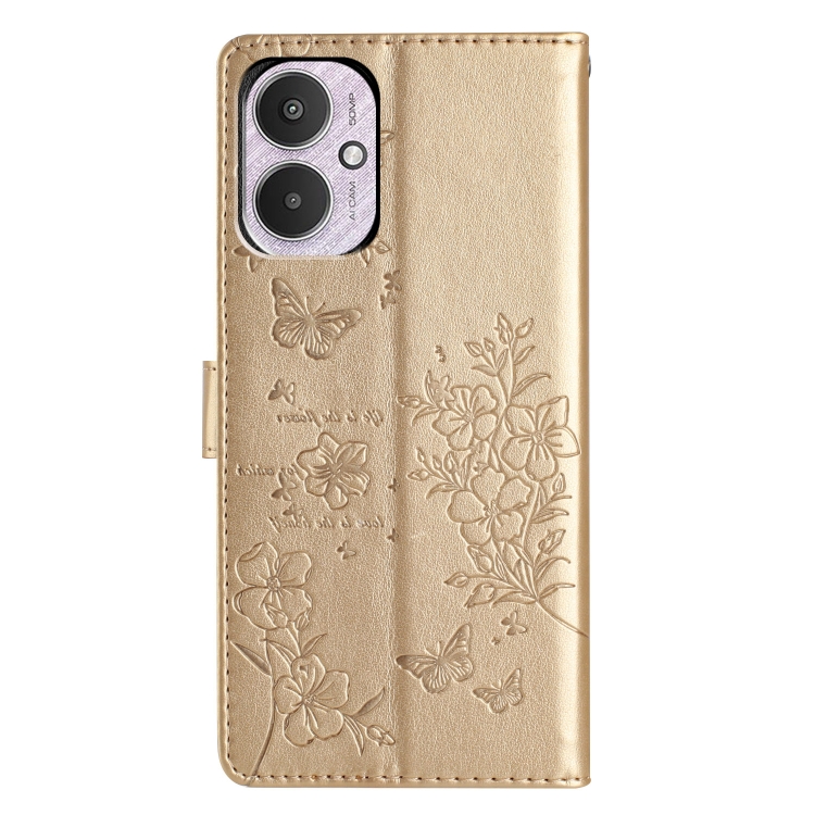 Para Redmi 13C 4G Funda de Cuero para Teléfono con Mariposas y Flores (Dorado)