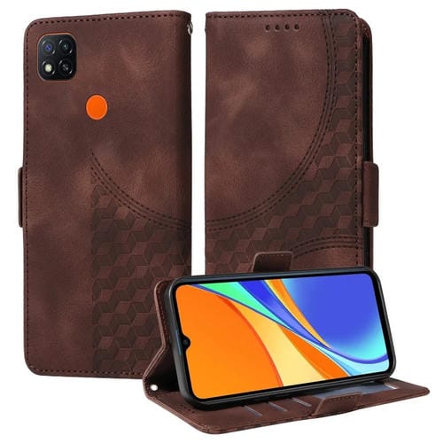 Para Redmi 9C / 9 India Funda para Teléfono de Cuero Estrellado con Rombos En Relieve (Marrón)