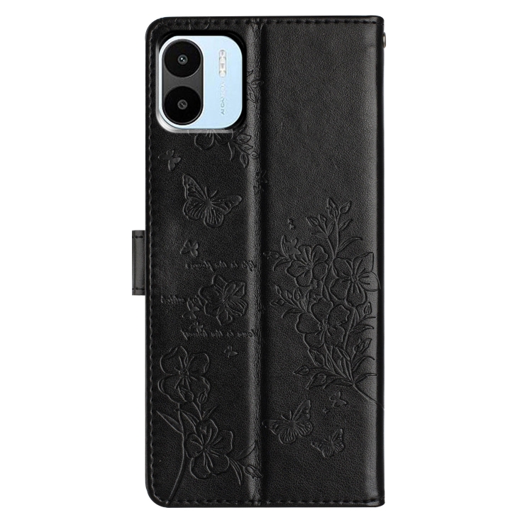 Para Redmi A1 Funda de Cuero para Teléfono con Mariposas y Flores (Negro)