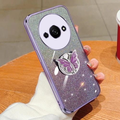 Para Redmi A3 Estuche para Teléfono de TPU con Soporte de Mariposa con Brillo Degradado Plateado (Púrpura)