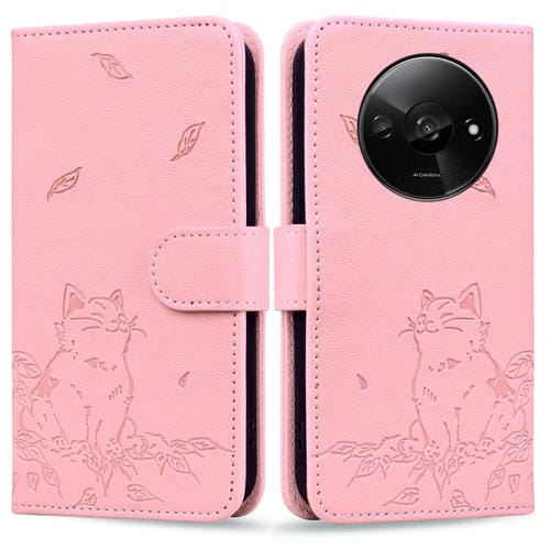 Para Redmi A3 Funda para Teléfono de Cuero con Relieve de Gato Lindo (Rosa)