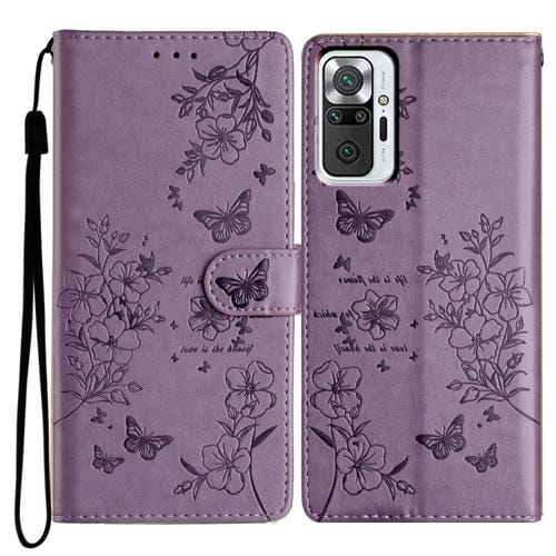Para Redmi Note 10 Pro Funda de Cuero para Teléfono con Mariposas y Flores (Púrpura)