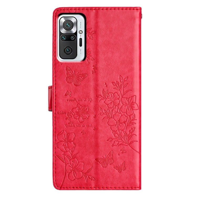 Para Redmi Note 10 Pro Funda de Cuero para Teléfono con Mariposas y Flores (Rojo)