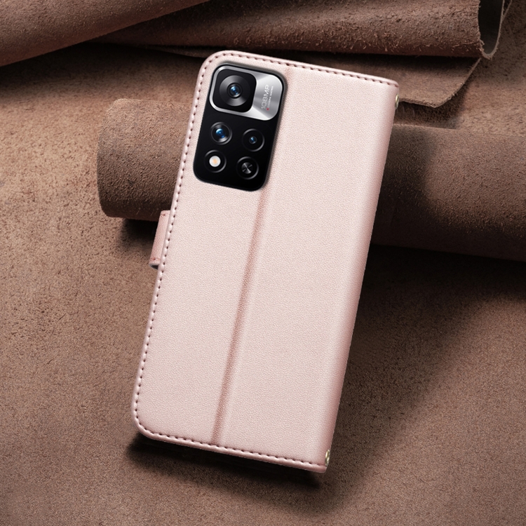 Para Redmi Note 11 Pro 5G / 4G Funda de Cuero para Teléfono con Textura Cuadrada Global (Oro Rosa)