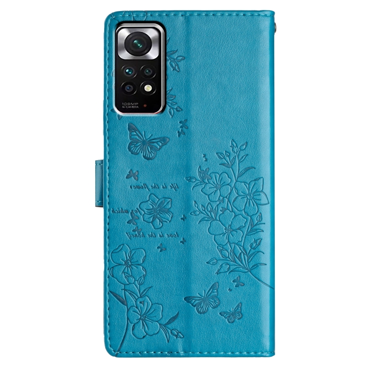 Para Redmi Note 11S 4G Funda de Cuero para Teléfono con Mariposas y Flores (Azul)