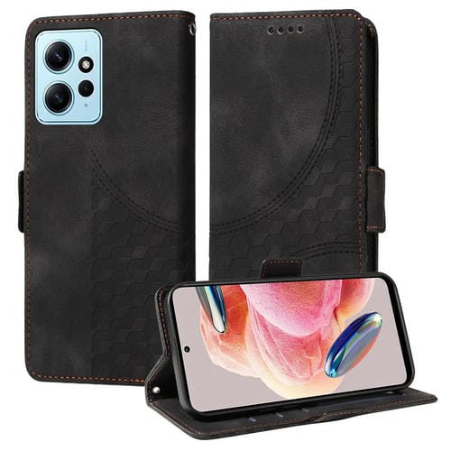 Para Redmi Note 12 4G Funda de Teléfono de Cuero Estrellado con Rombo En Relieve Global (Negro)