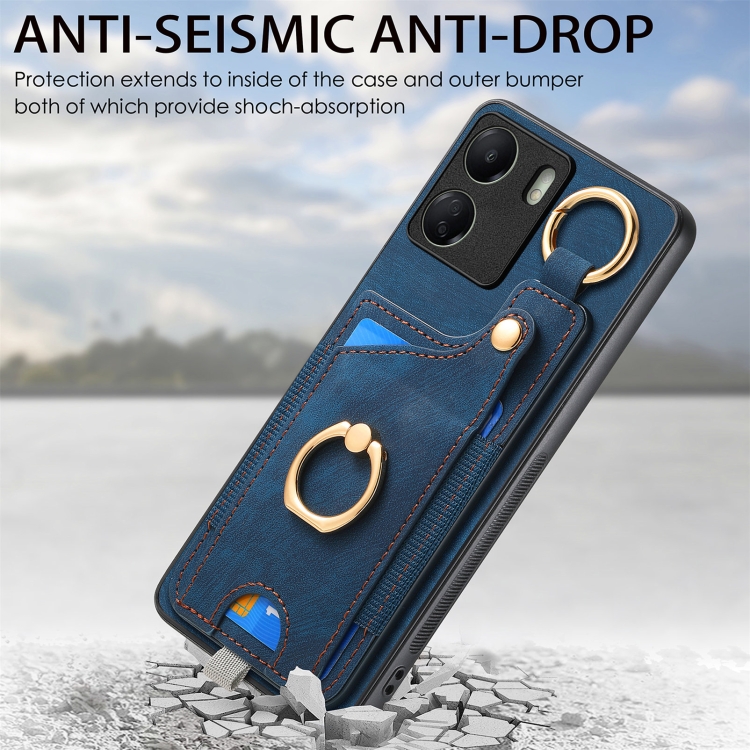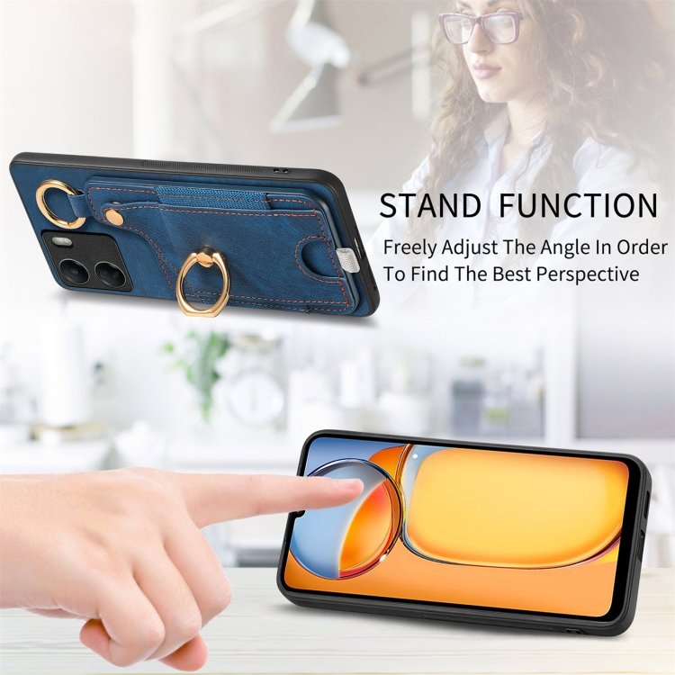 Para Redmi Note 12 Turbo Retro Skin-Feel Ring Card Bag Funda para Teléfono con Lazo para Colgar (Azul)