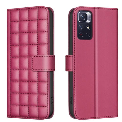 Para Redmi Note 12S Funda de Cuero para Teléfono con Textura Cuadrada Global (Rojo)
