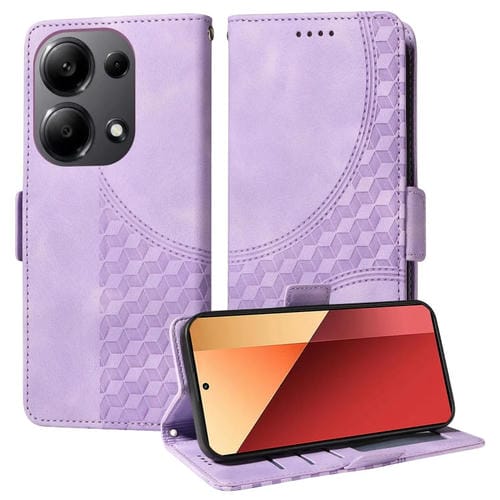 Para Redmi Note 13 4G Funda para Teléfono de Cuero Estrellado con Rombos En Relieve (Púrpura)